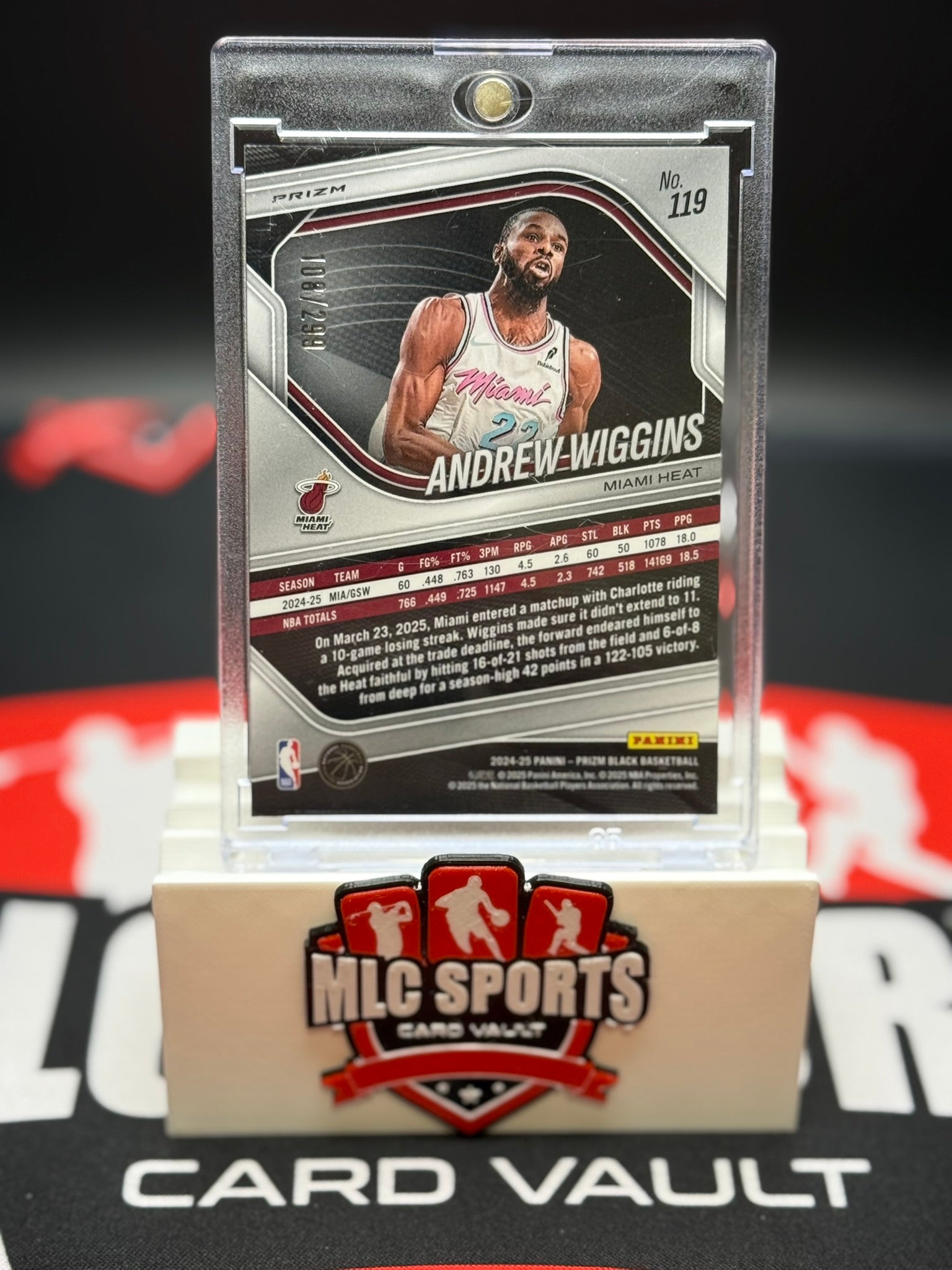 Featuring Wiggins in his Miami Heat uniform, this serial-numbered 108/299 Prizm card combines the sleek metallic finish of the Black set with a vibrant red foil border. Known for his two-way play and smooth scoring, Wiggins continues to be one of the most dynamic small forwards in the NBA.