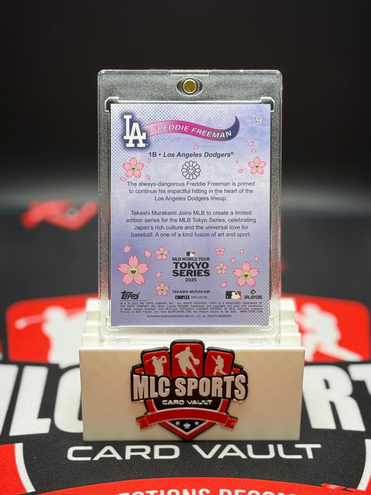 Celebrate art and baseball with this 2025 Topps Takashi Murakami Freddie Freeman Tokyo Series card — part of the exclusive MLB World Tour Tokyo Series collaboration. Designed by Japanese artist Takashi Murakami, this limited card merges Murakami’s floral pop-art style with Topps’ classic baseball aesthetic, making it one of the most visually striking international releases in MLB trading card history.