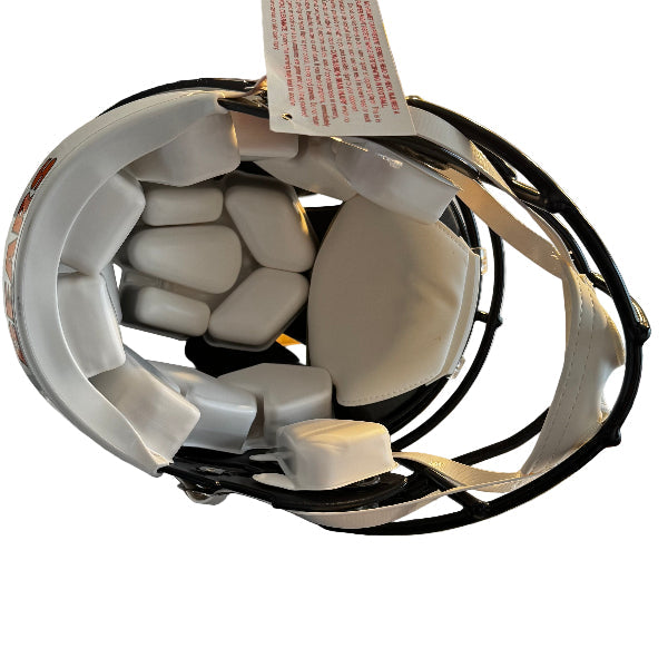 Chicago Bears Full Size Authentic Revolution Speed NFL Helmet by Riddell. This full size Bears helmet is designed with extended mandible (jaw area) protection, a steel polyvinyl-coated face mask, chin strap, increased padding, an integrated facemask attachment system and elliptical air vents. NFL Team name on back bumper (except Chiefs, Steelers and Giants). The officially licensed Chicago Bears helmet is great for autographs and features Bears team logo decals on both sides. The striking shape of the future. NFL Bears Authentic Revolution Speed helmet size is 13.5"(L) x 9.75"(W) x 10.25"(H). NFL Chicago Bears Full Size Helmet.