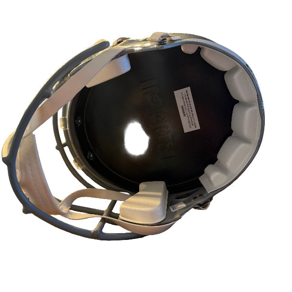 Dallas Cowboys Full Size Throwback Speed Replica NFL Helmet by Riddell. This full size Cowboys helmet is designed with a non-wear plate and molded foam jaw pads. a steel polyvinyl-coated face mask, 4-pt chin strap, and elliptical air vents. NFL Team name on back bumper (except Chiefs, Steelers and Giants). The officially licensed NFL helmet is great for autographs and features Cowboys team logo decals on both sides. The striking shape of the future. NFL Cowboys Replica Speed helmet size medium measures: 12.75"(L), 9.25"(W), 9.75"(H). NFL Dallas Cowboys Full Size Speed Replica Helmet. (NOT FOR WEARING)